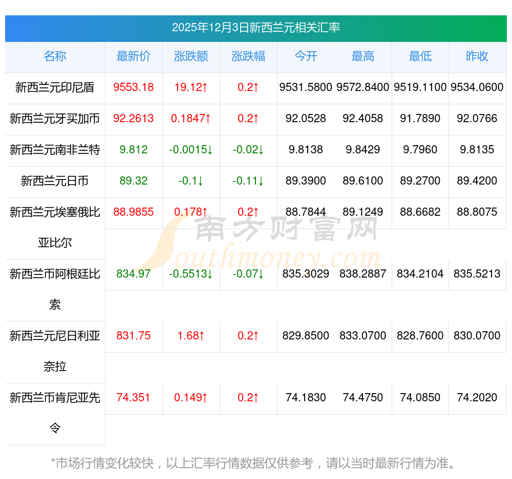 根据2025年12月3日汇率计算,NZD兑换JPY汇率最新价89.320000:今日开价89.3900,昨日收价89.4200,最高价89.6100,最低价89.2700。