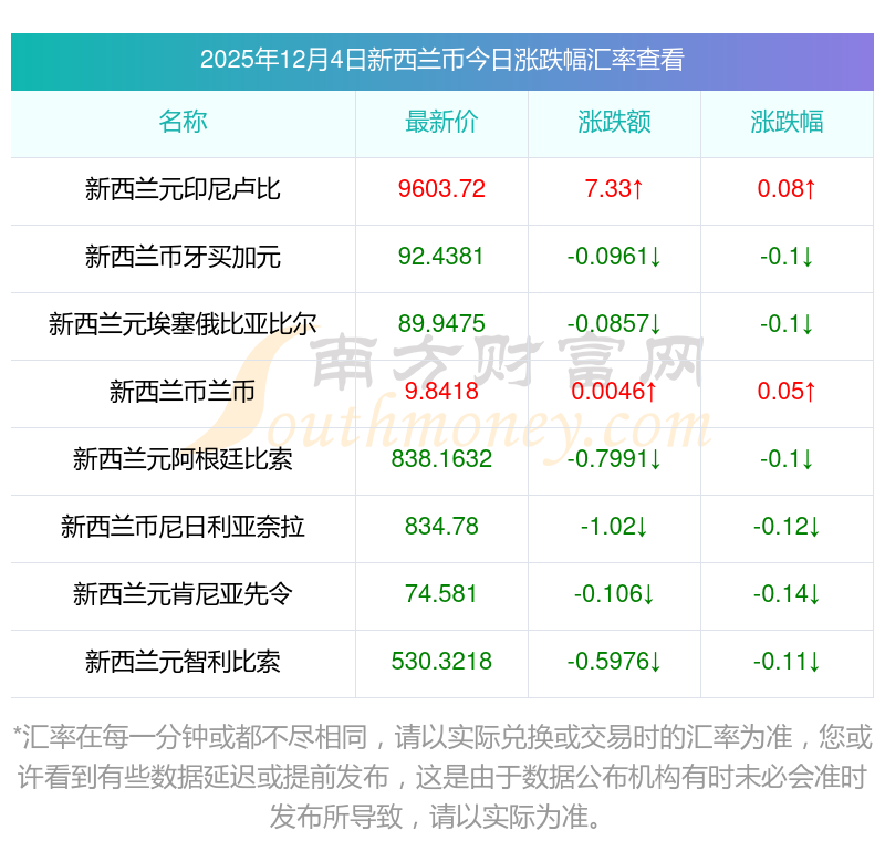 南方财富网为您提供新西兰币对兰币汇率最新价格详情。
