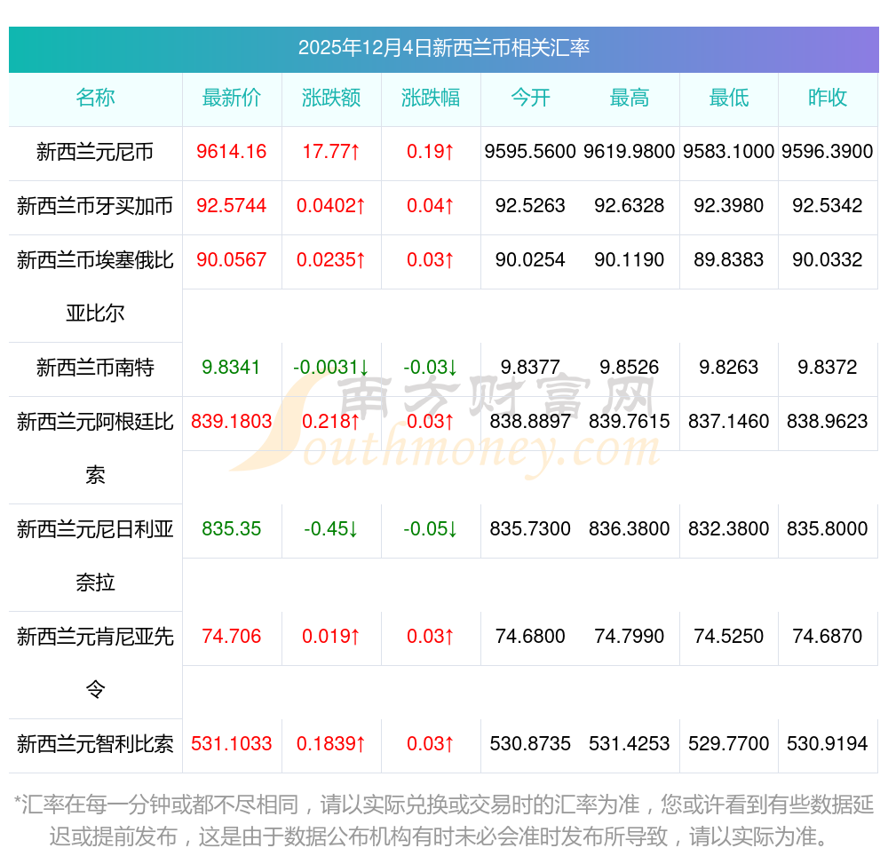 2025年12月4日新西兰币相关汇率查询