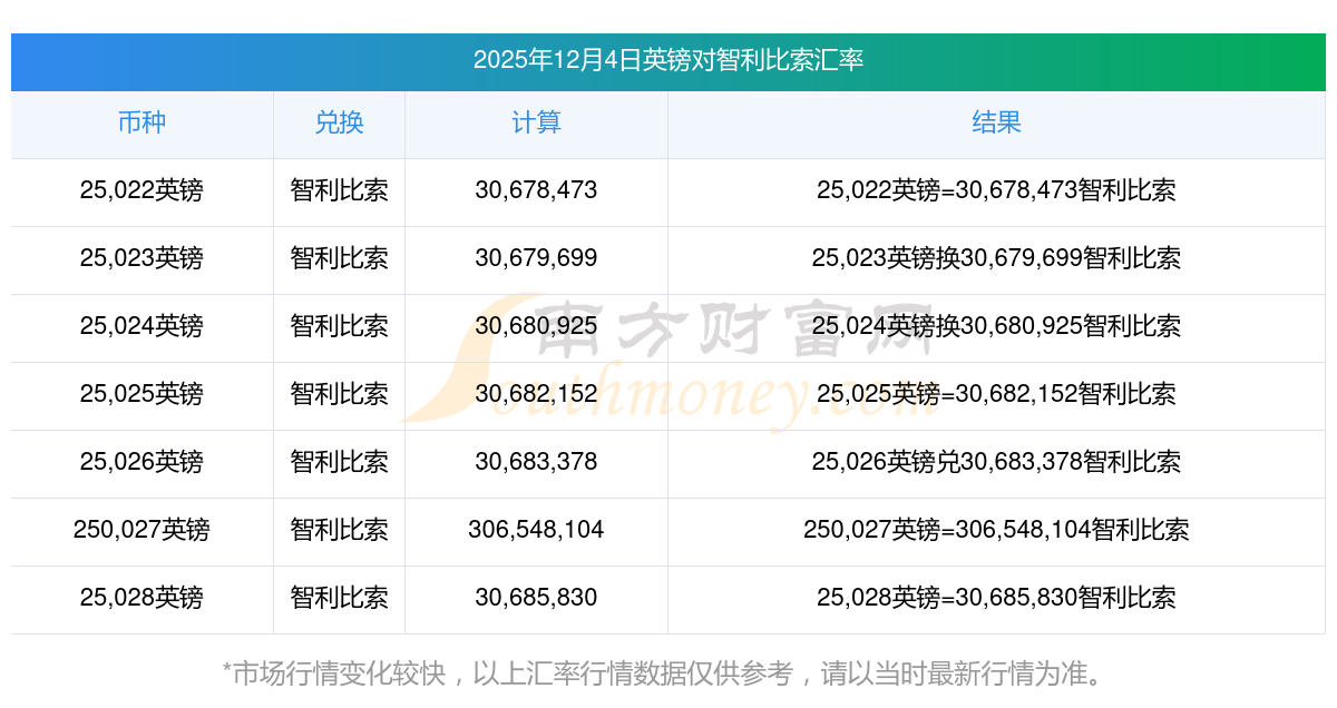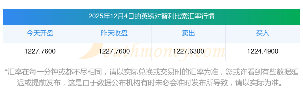 英镑今日汇价:12025年12月4日英镑兑智利比索汇价查询