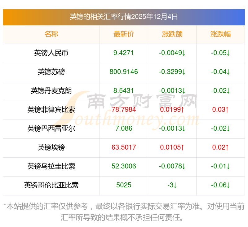 2025年12月4日英镑相关汇率查询