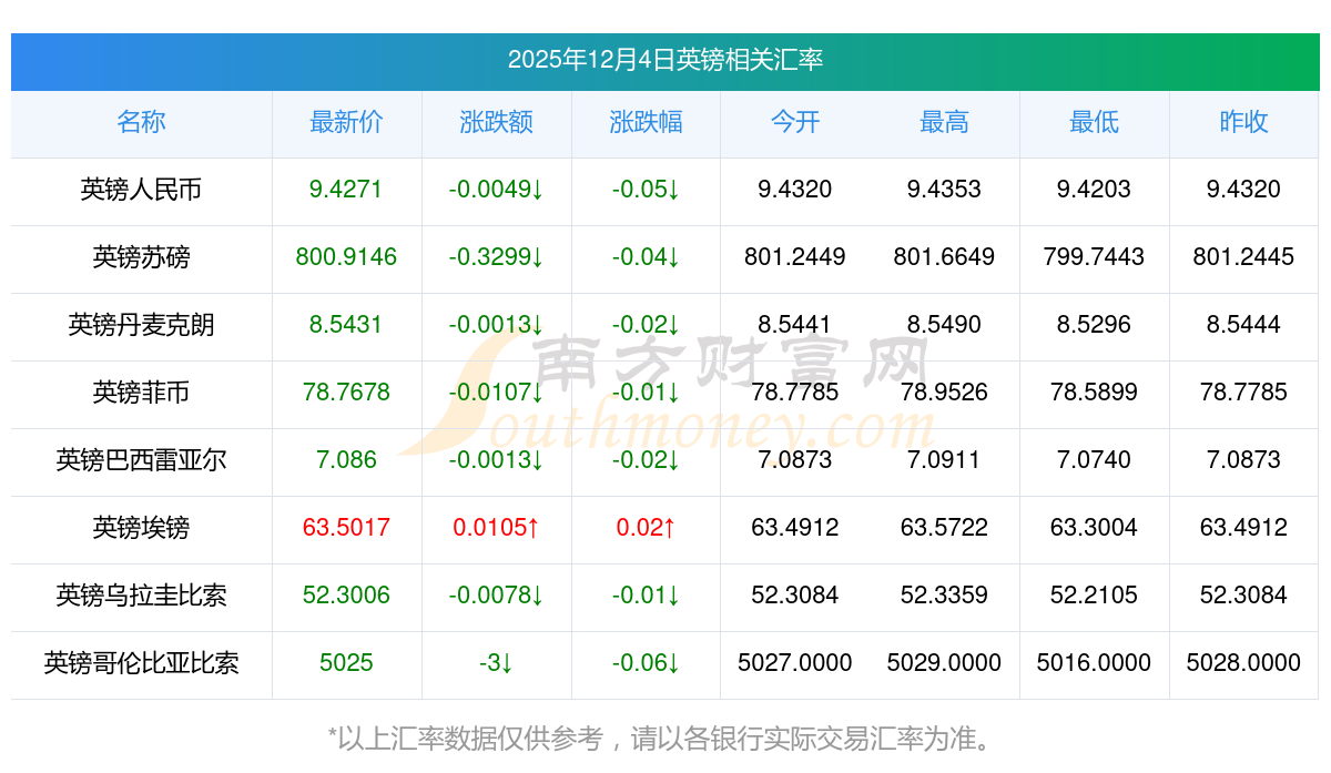 第3.人民币与英镑的汇率:例如,2025年5月1人民币约等于0.10英镑。