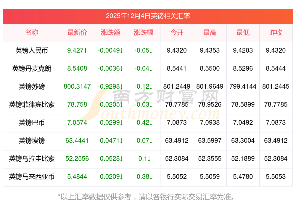 根据2025年12月4日汇率,英镑兑换越南币汇率最新价35184.000000,今开价35214.0000,昨收价35214.0000,最高价35249.0000,最低价35137.0000。