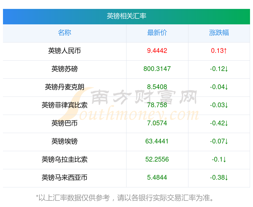 南方财富网为您提供英镑对南特汇率最新价格详情。