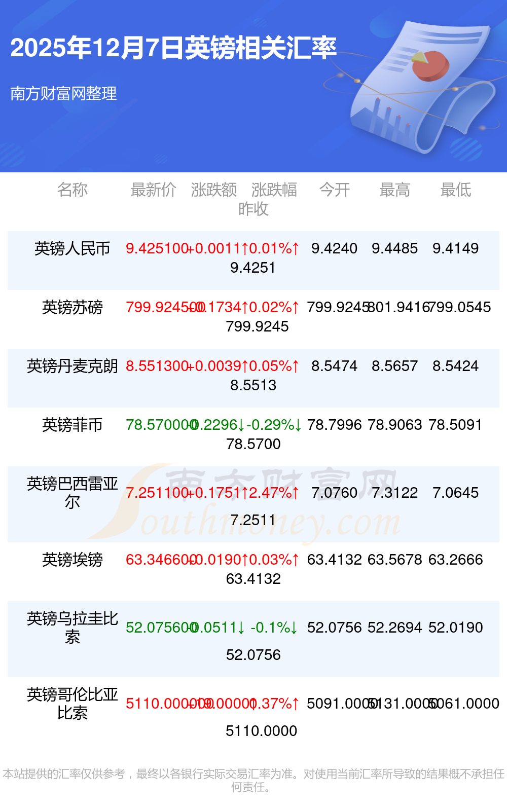 2025年12月7日英镑兑换埃镑最新汇率:63.346600,今开:63.4132,昨收:63.4132,最高:63.5678,最低:63.2666。