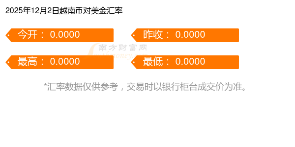南方财富网为您提供越南币对美金汇率最新价格详情。