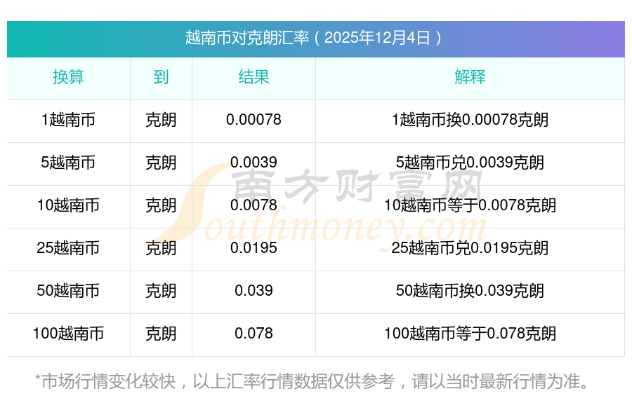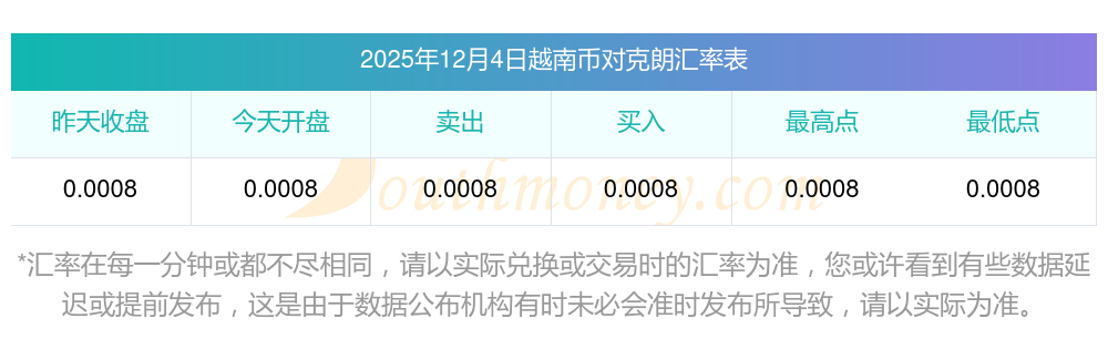 今天汇率表 135越南币兑克朗汇率一览 (2025-12-4)