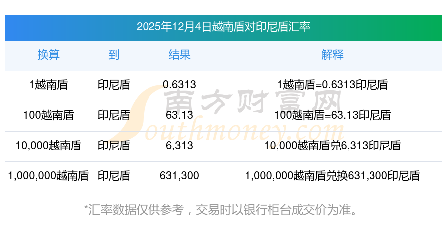 2025-12-04 24越南盾兑换成印尼盾汇率是多少_汇率查询方法