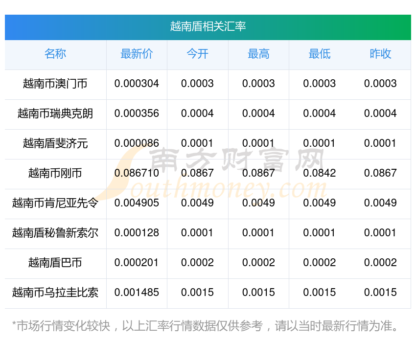 南方财富网为您提供越南盾对印尼盾汇率最新价格详情。