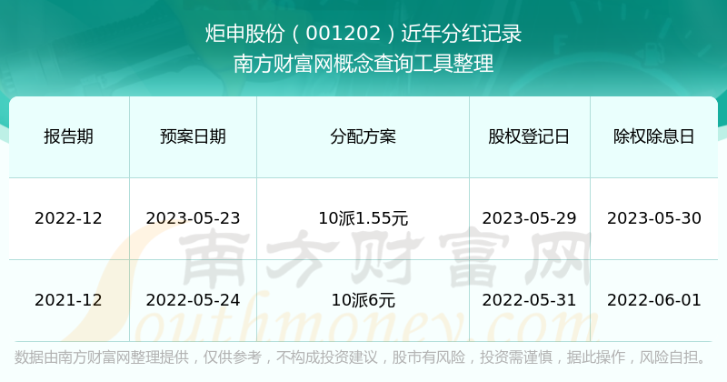 炬申股份最新一次公布的分红方案:10派1.55元。