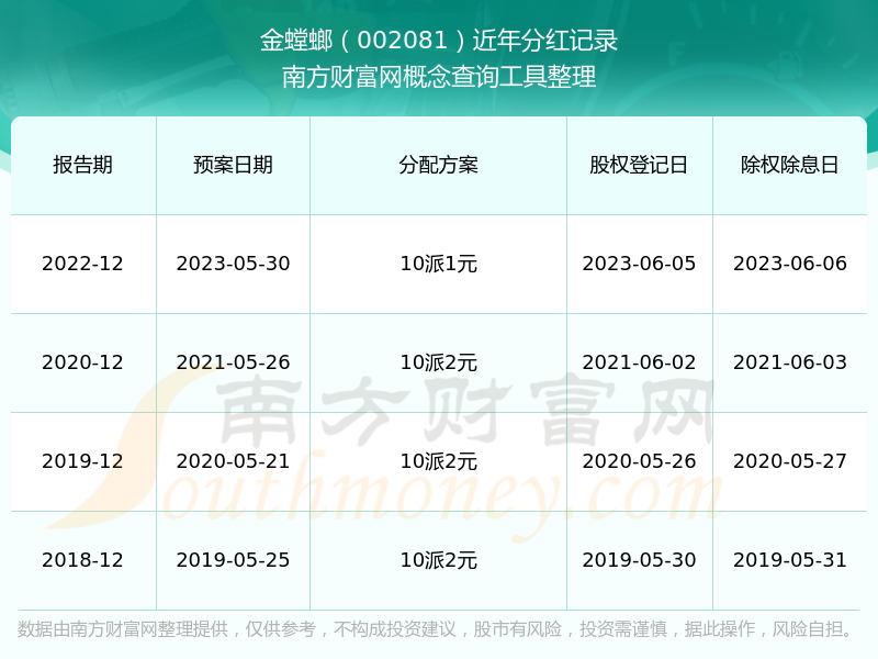 金螳螂最新一次公布的分红方案为10派1元。本次权益分派股权登记日为2023年6月5日,除权除息日为2023年6月6日,派息日为2023年6月6日。