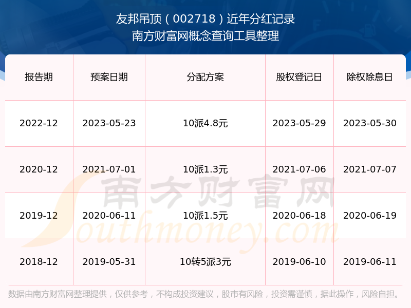 友邦吊顶最新一次公布的分红方案:10派4.8元。