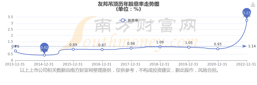 友邦吊顶历年股息率走势如下图: