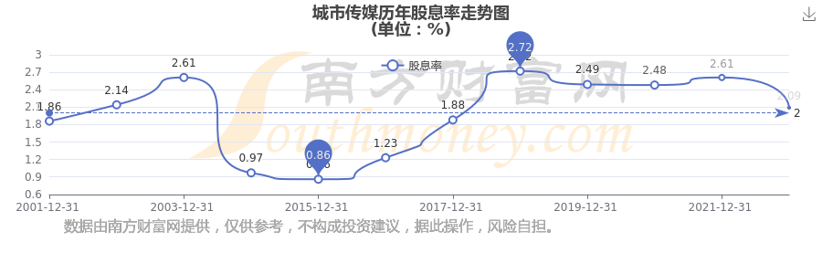 近年城市传媒年度股息率走势如下图:
