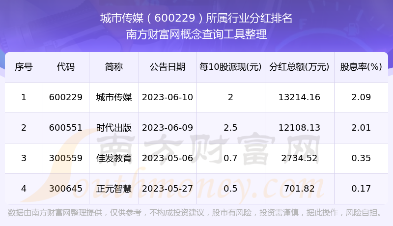 二、城市传媒600229行业分红排名