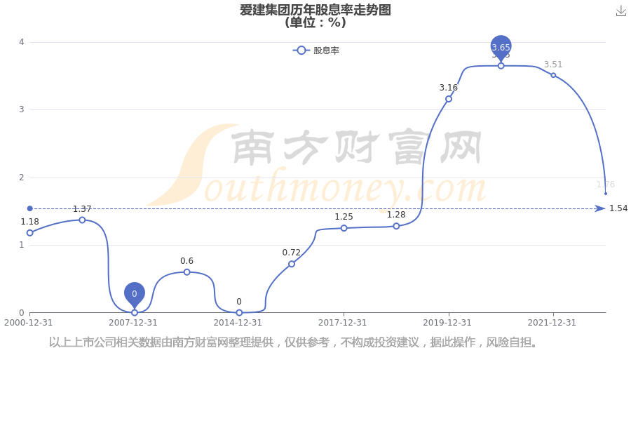 近年爱建集团年度股息率走势如下图: