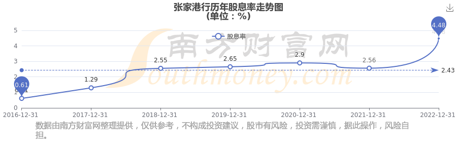 张家港行最新一次公布的分红方案为10派2元。本次权益分派股权登记日为2023年5月31日,除权除息日为2023年6月1日,派息日为2023年6月1日。
