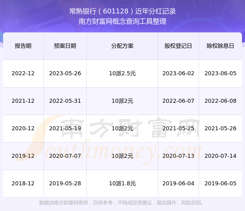 常熟银行601128分红时间:
