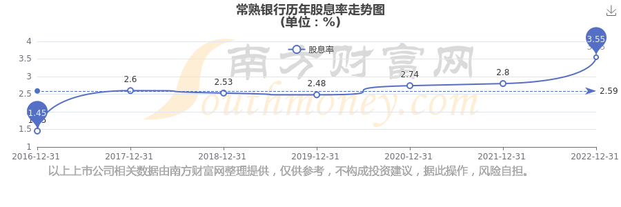 常熟银行历年股息率走势如下图: