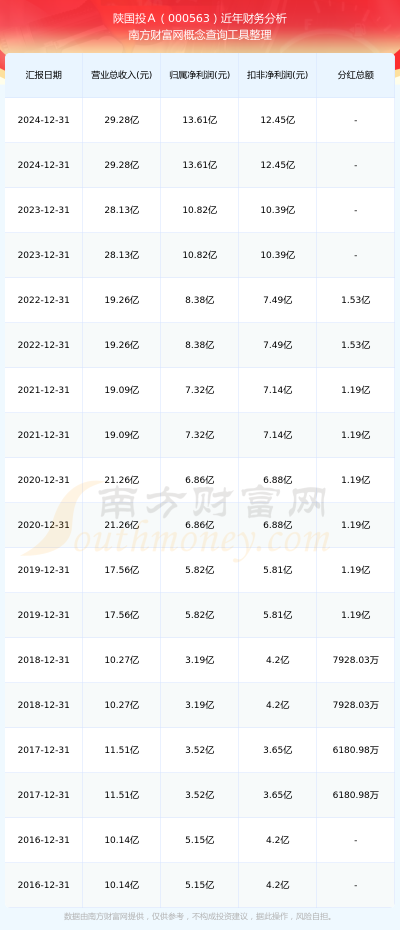 2024年公司总营收29.28亿,同比增长4.08%;净利润13.61亿。