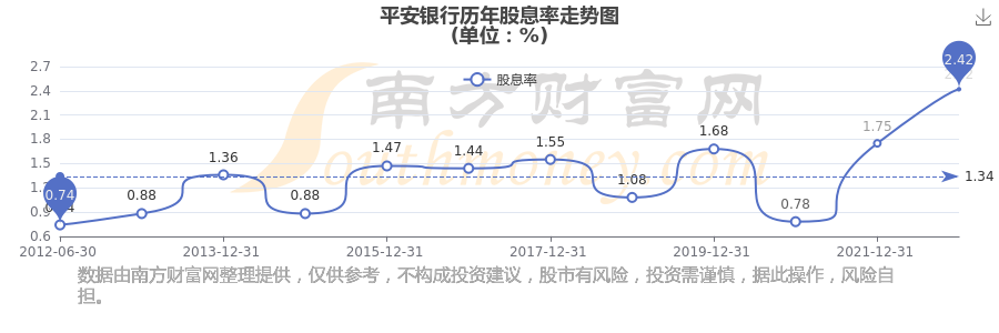 近年平安银行年度股息率走势如下图: