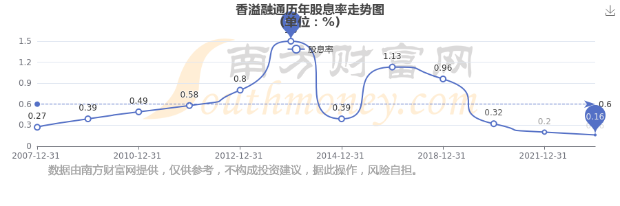 香溢融通最新一次公布的分红方案为10派0.1元。本次权益分派股权登记日为2023年6月5日,除权除息日为2023年6月6日,派息日为2023年6月6日。