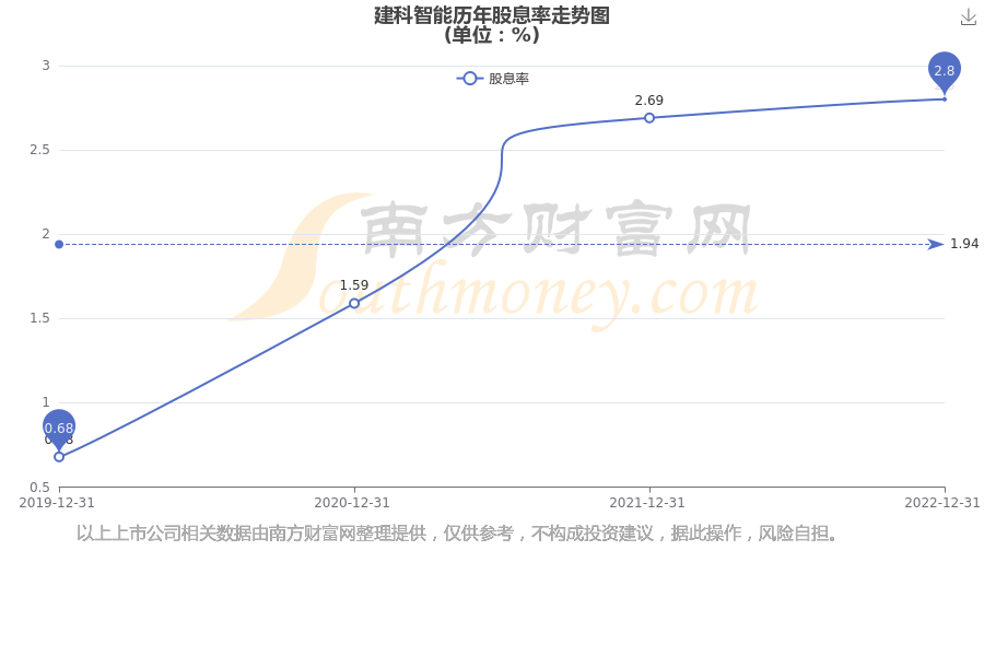 建科智能最新一次公布的分红方案为10派5.33元。本次权益分派股权登记日为2023年5月23日,除权除息日为2023年5月24日,派息日为2023年5月24日。