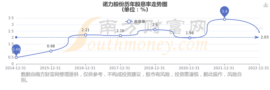 诺力股份历年股息率走势如下图:
