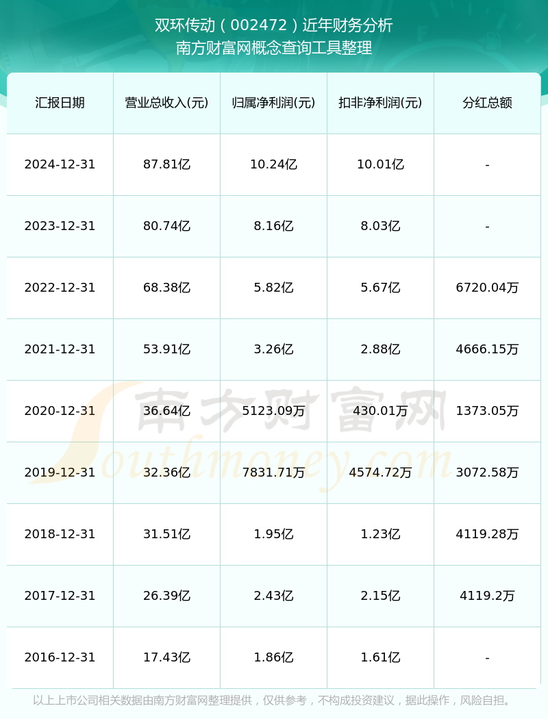 双环传动公司2024年实现营业收入87.81亿元,同比增长8.76%;净利润10.24亿元,同比增长25.42%;毛利率25.01%。