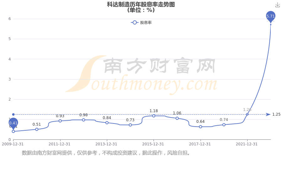 近年科达制造年度股息率走势如下图: