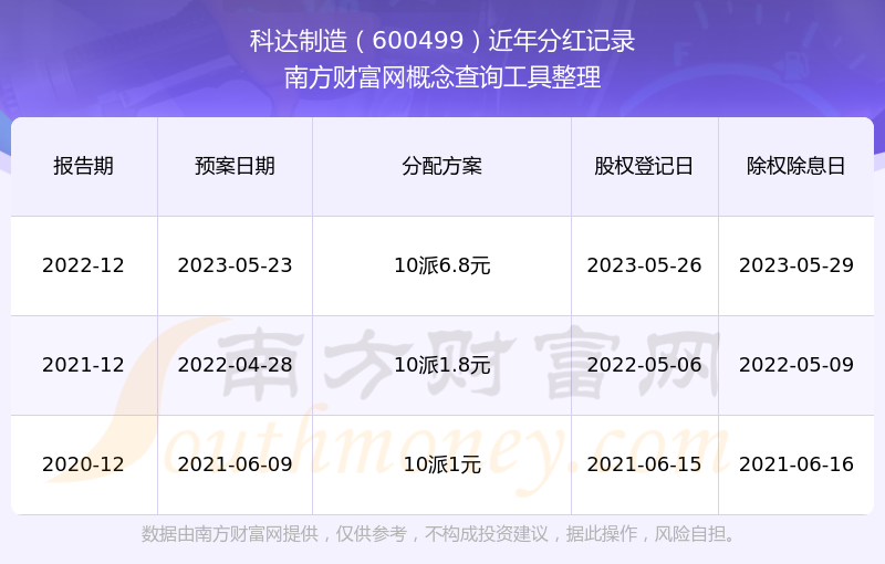科达制造最新一次公布的分红方案为10派6.8元。本次权益分派股权登记日为2023年5月26日,除权除息日为2023年5月29日,派息日为2023年5月29日。