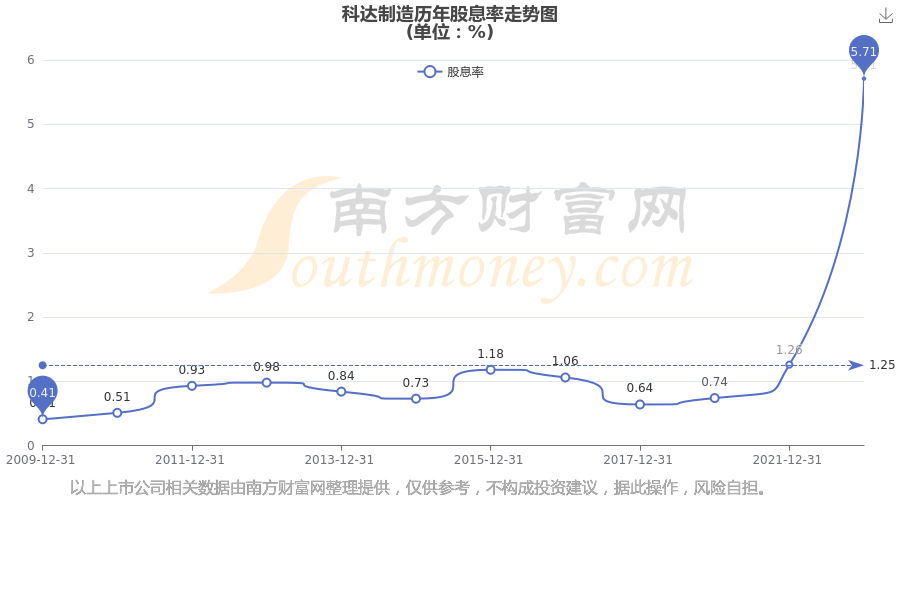 科达制造历年股息率走势如下图: