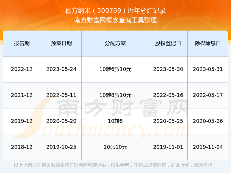德方纳米最新一次公布的分红方案:10转6派10元。