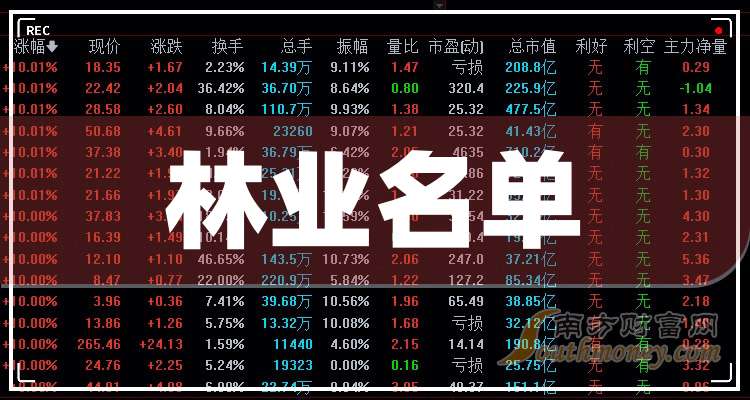 林业概念股有平潭发展、青山纸业、岳阳林纸、泉阳泉、统一股份、康欣新材、福建金森、永安林业、丰林集团、时代万恒等14家上市公司。