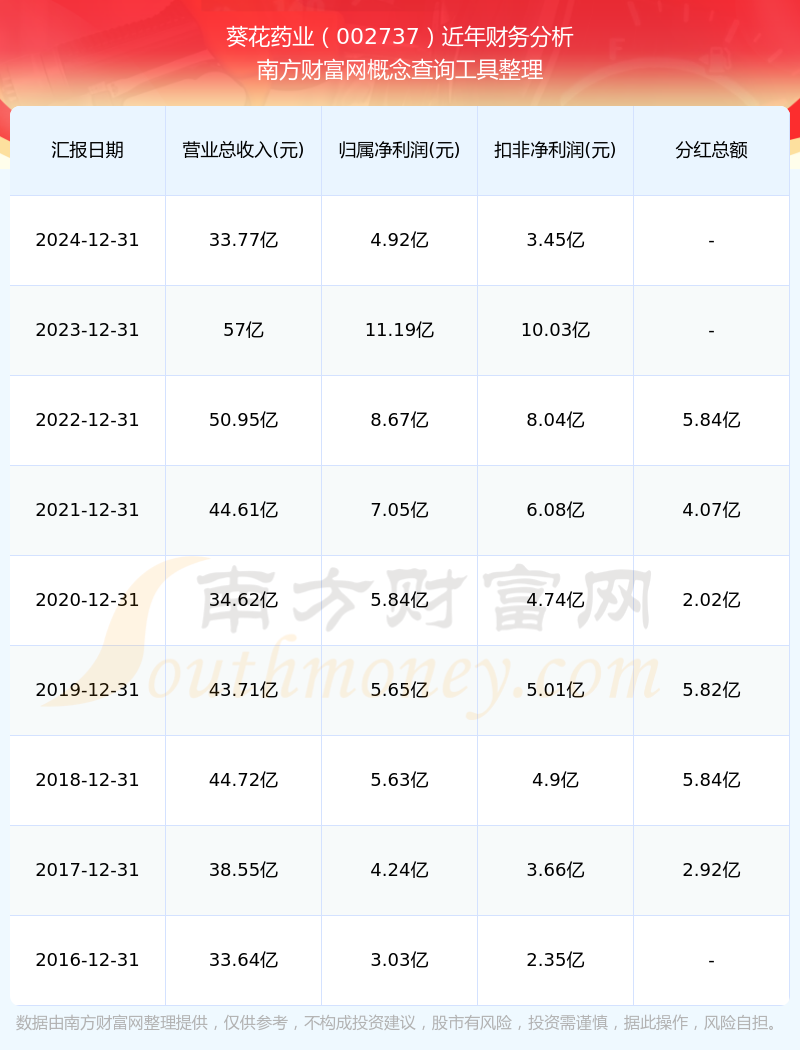 2024年公司总营收33.77亿,同比增长-40.76%;净利润4.92亿,同比增长-56.03%;销售毛利率44.89%。