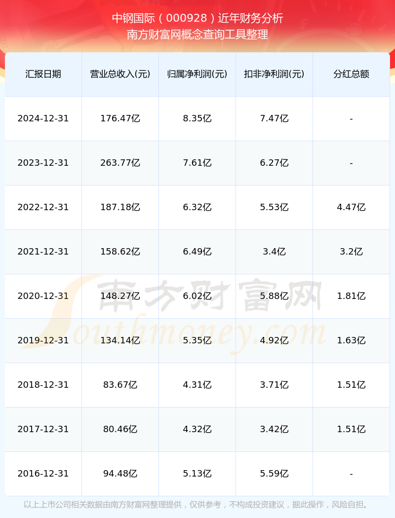 中钢国际公司2024年实现营收176.47亿元,净利润8.35亿元,毛利率14.5%。