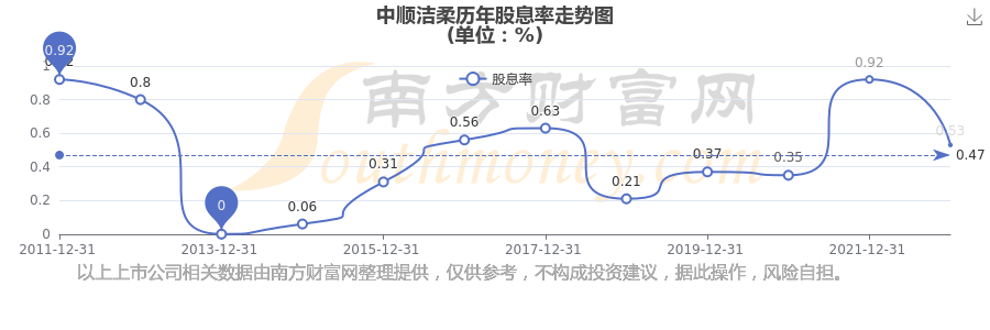 近年中顺洁柔年度股息率走势如下图: