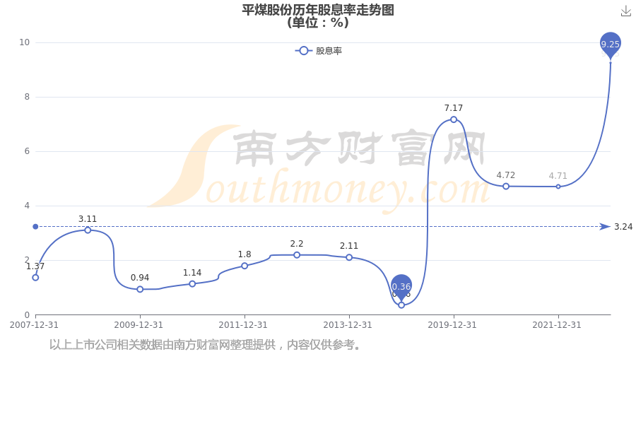 近年平煤股份年度股息率走势如下图: