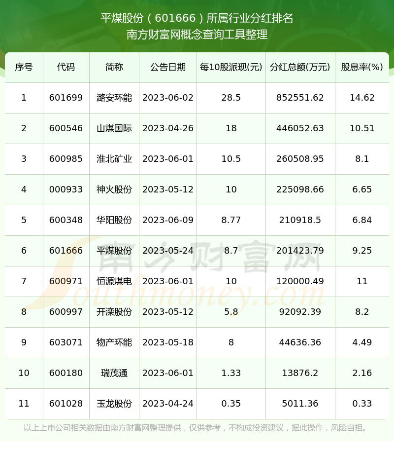 二、平煤股份601666行业分红排名