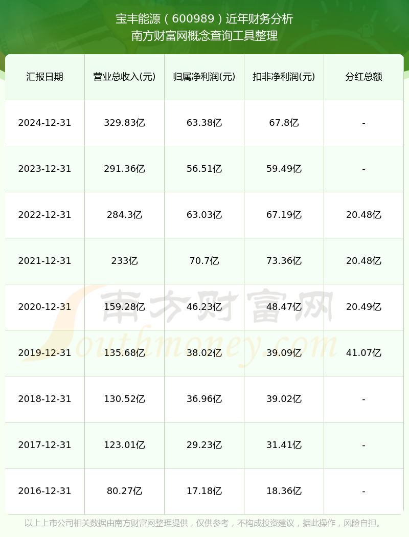 宝丰能源公司2024年实现营收329.83亿元,净利润63.38亿元,毛利率33.15%。