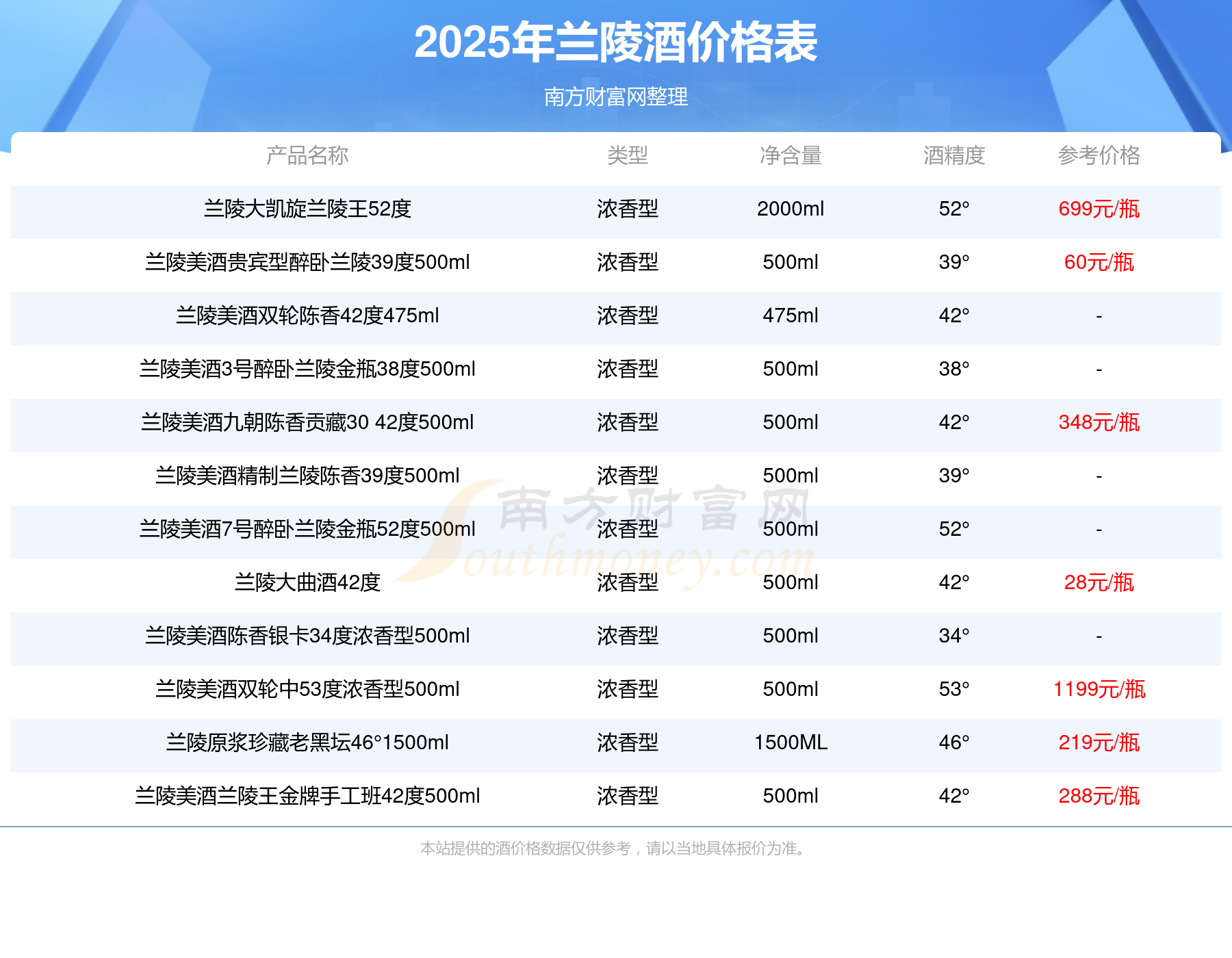 2025兰陵酒价格表_兰陵酒价格一览表