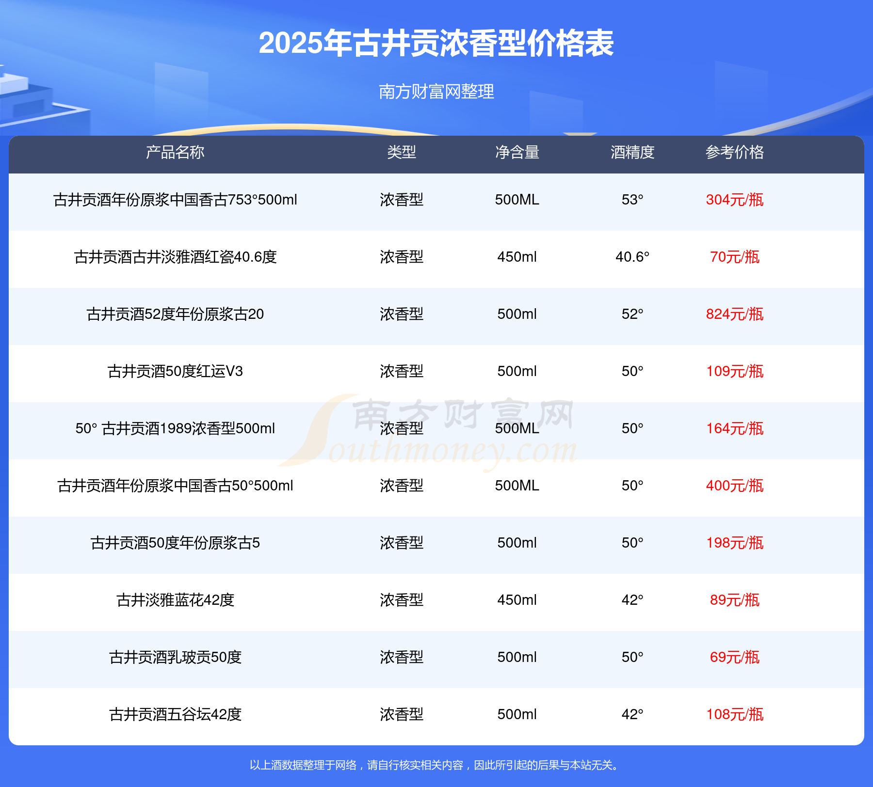 古井贡浓香型酒价格表查询_古井贡浓香型酒2025价格一览表
