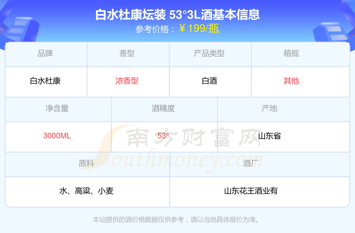白水杜康坛装 53°3L基本信息