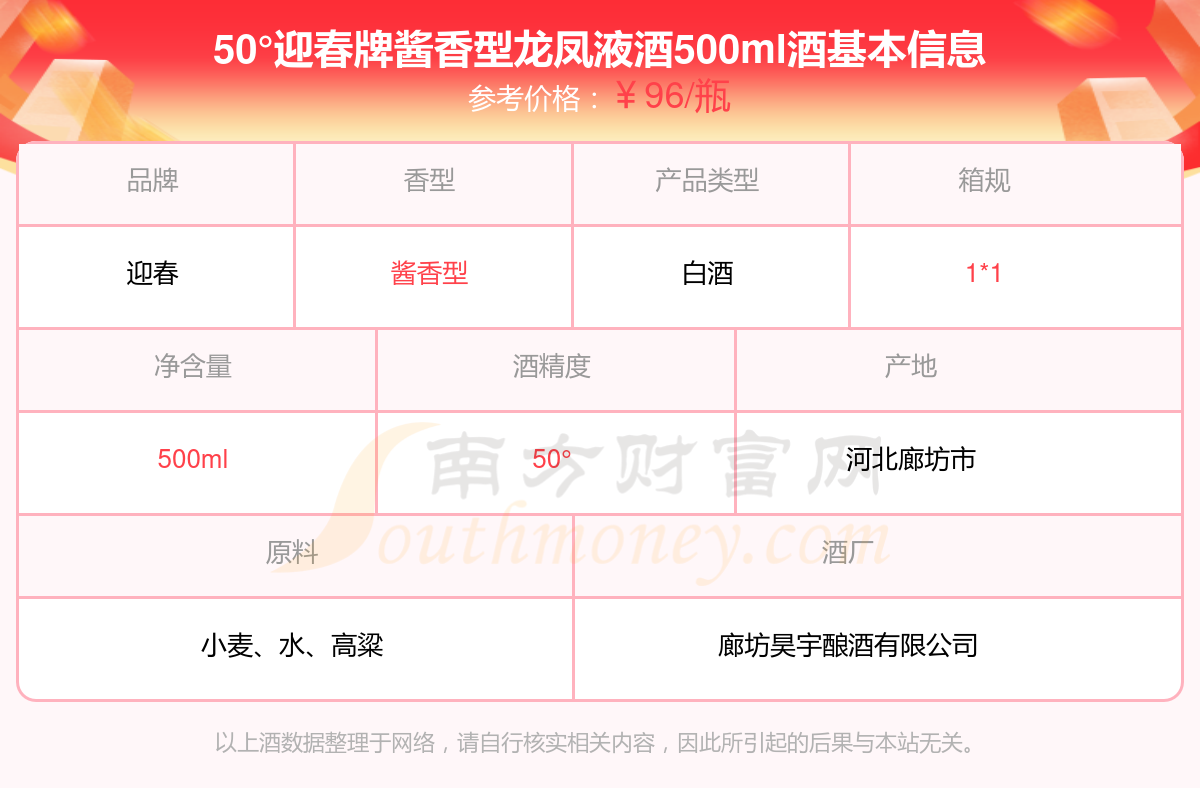 50°迎春牌酱香型龙凤液酒500ml基本信息
