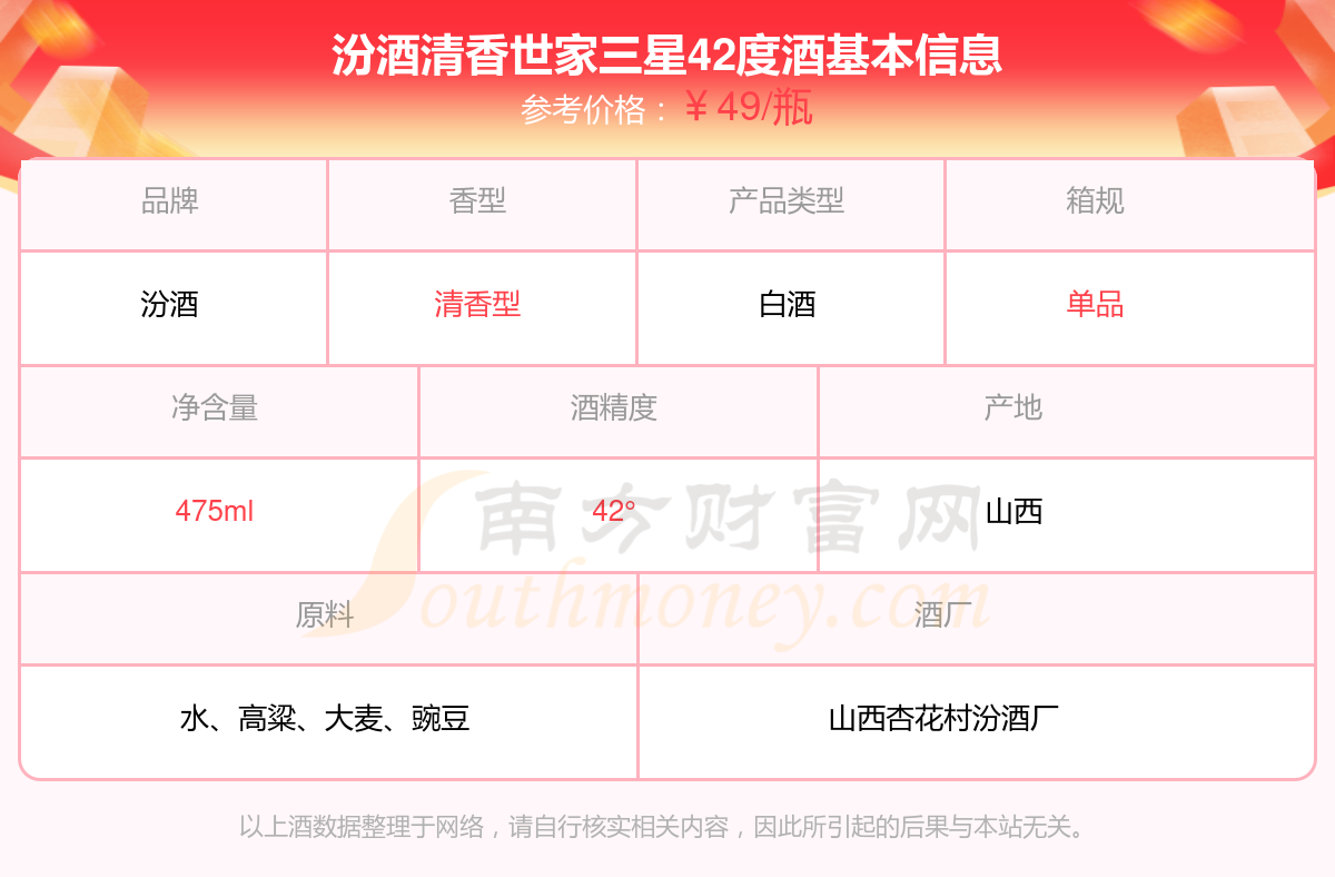 汾酒清香世家三星42度基本信息