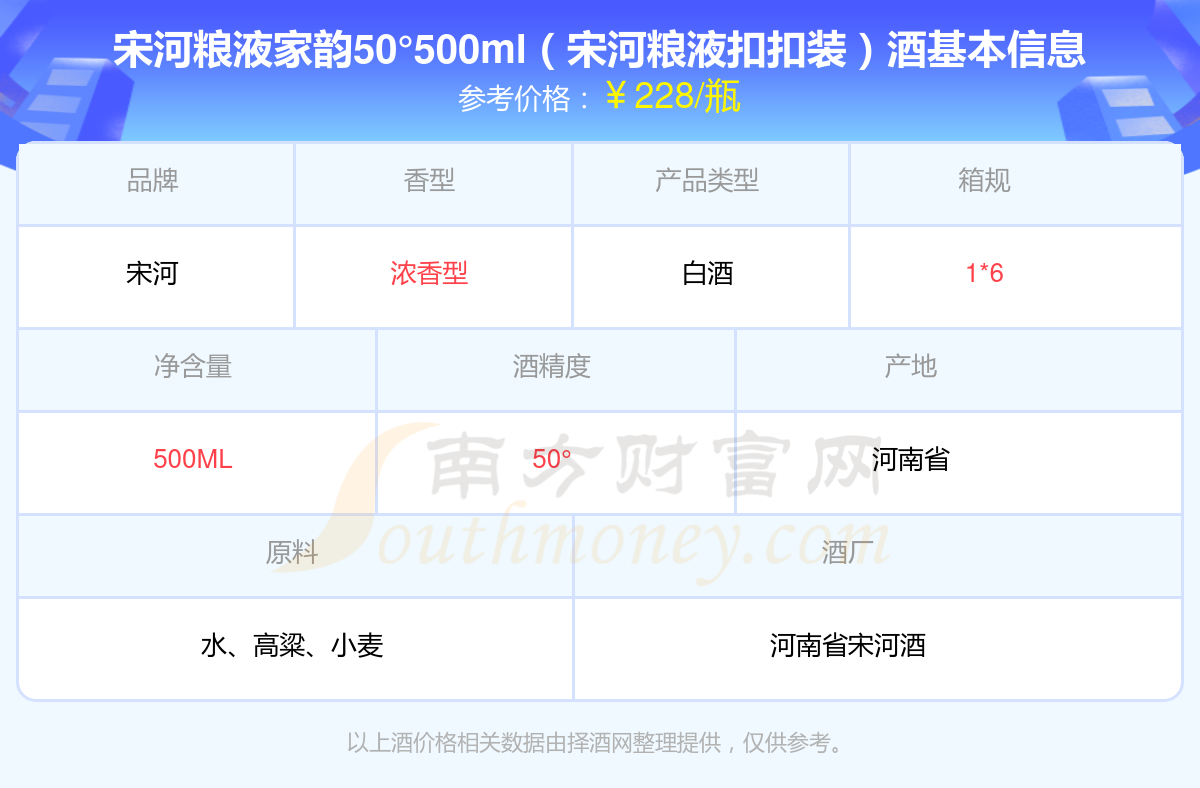 宋河粮液家韵50°500ml(宋河粮液扣扣装)基本信息