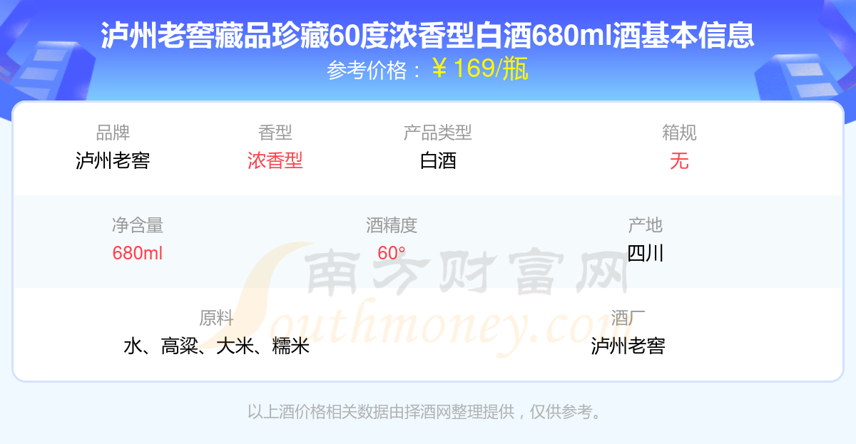 泸州老窖藏品珍藏60度浓香型白酒680ml基本信息