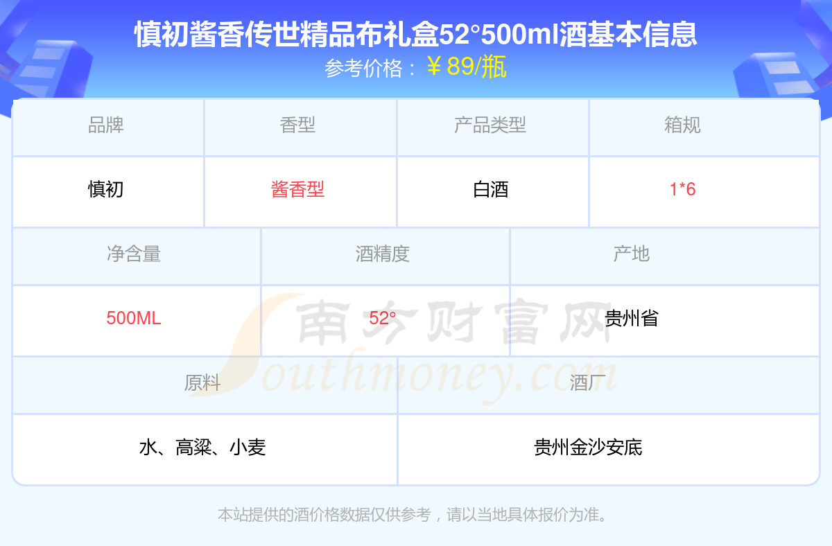 慎初酱香传世精品布礼盒52°500ml基本信息
