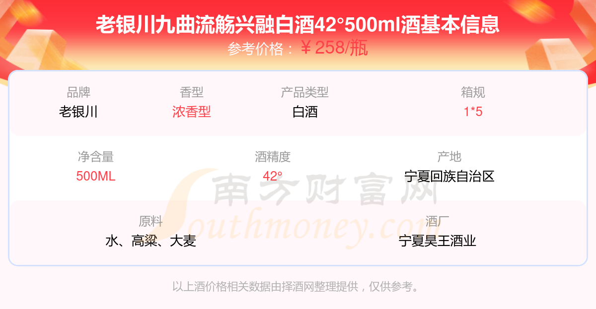老银川九曲流觞兴融白酒42°500ml基本信息