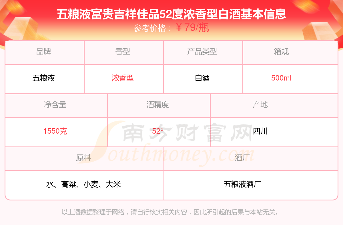 五粮液富贵吉祥佳品52度浓香型白酒基本信息